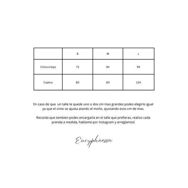 Disponible en 3 talles, en caso de precisar otro talle hablame por mail o instagram y se puede hacer!