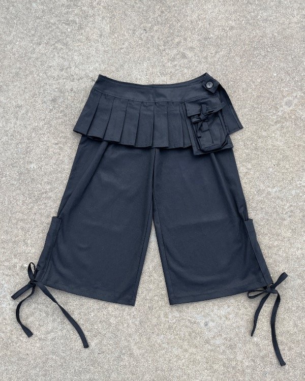 Bermuda pescadora ancha de gabardina negra liviana y super suave , tiro bajo (debajo del ombligo), con pinzas en frente y espalda. Ademas cuenta con tiras regulables en los laterales que permiten acortar la prenda unos centimetros!
