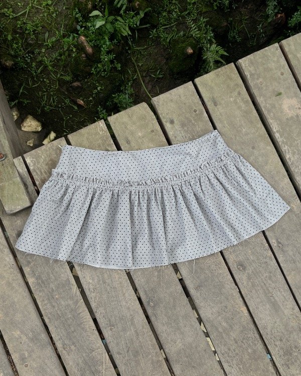 Mini falda de corderoy liviano, de algodón gris claro con polka dots, super suave , cuenta con acceso por cierre lateral