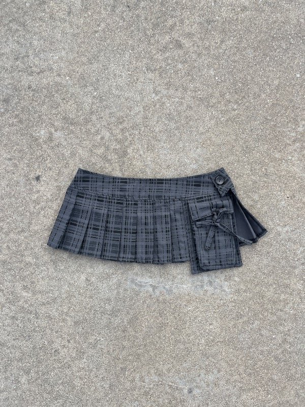 Mini tableada de gabardina a cuadros negra con gris pesadita , tiro bajo, con bolsillo cargo perfecto para guardar el celu. Ademas cuenta con tiras para atar y cerrar el bolsillo, y un botón de acceso.