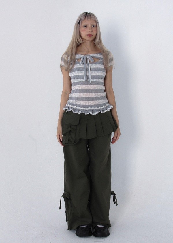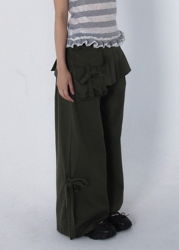 Pantalón ancho de gabardina verde militar, liviana y super suave , tiro bajo (debajo del ombligo), con pinzas en frente y espalda. Ademas cuenta con tiras regulables en los laterales que permiten acortar la prenda unos centimetros!