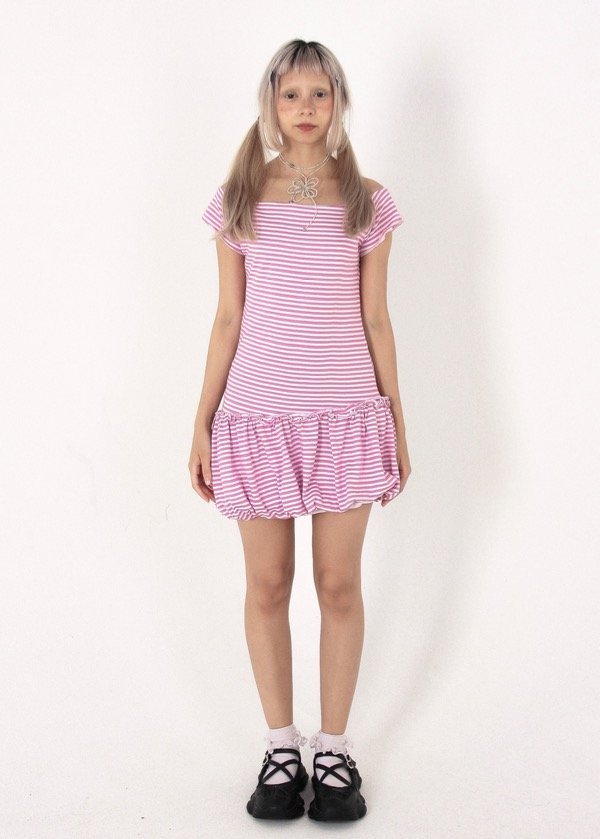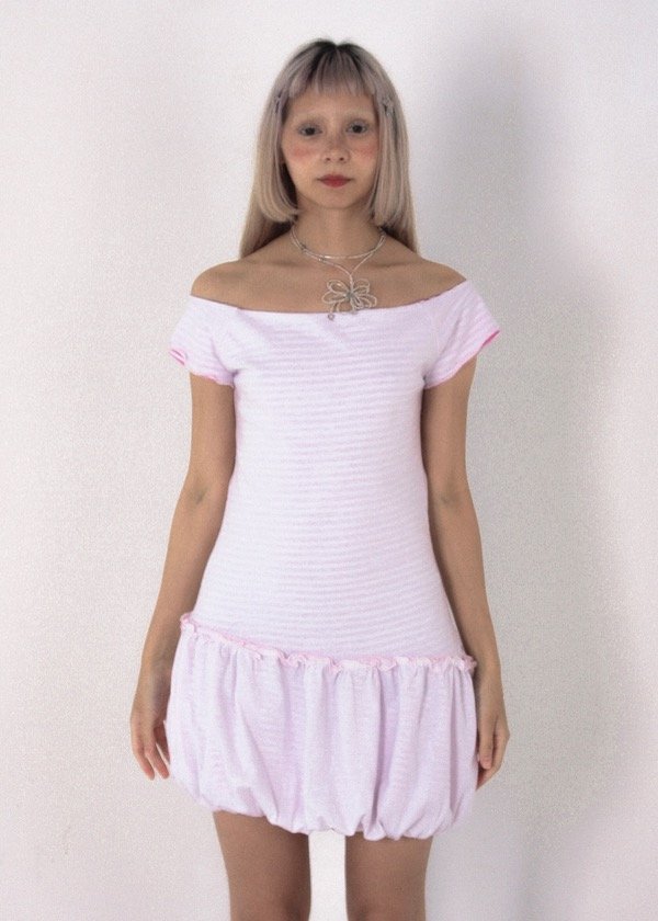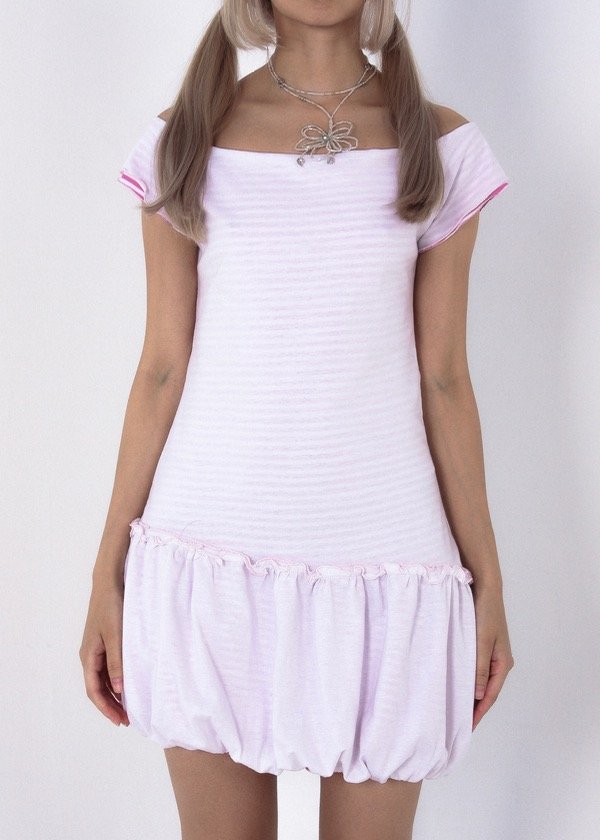 Vestido mini reversible de algodón 100%, de un lado es rayado (blanco y rosa) y del otro es blanco liso. Podes usarlo del lado que prefieras dependiendo la ocasión, lo cual lo hace muy versátil, 2 vestidos en 1!! La falda del vestido es tipo bubble.